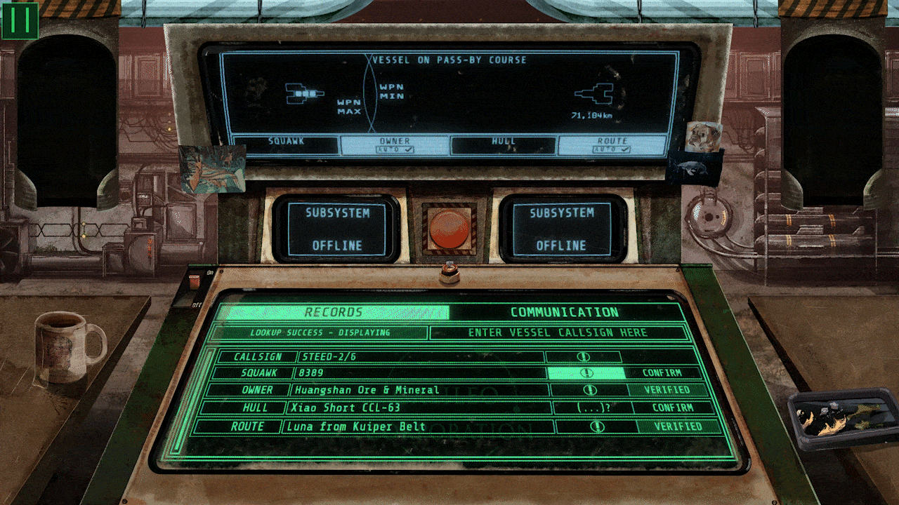 When passing other ships, you'll check their details against company records and facilitate a safe pass by.